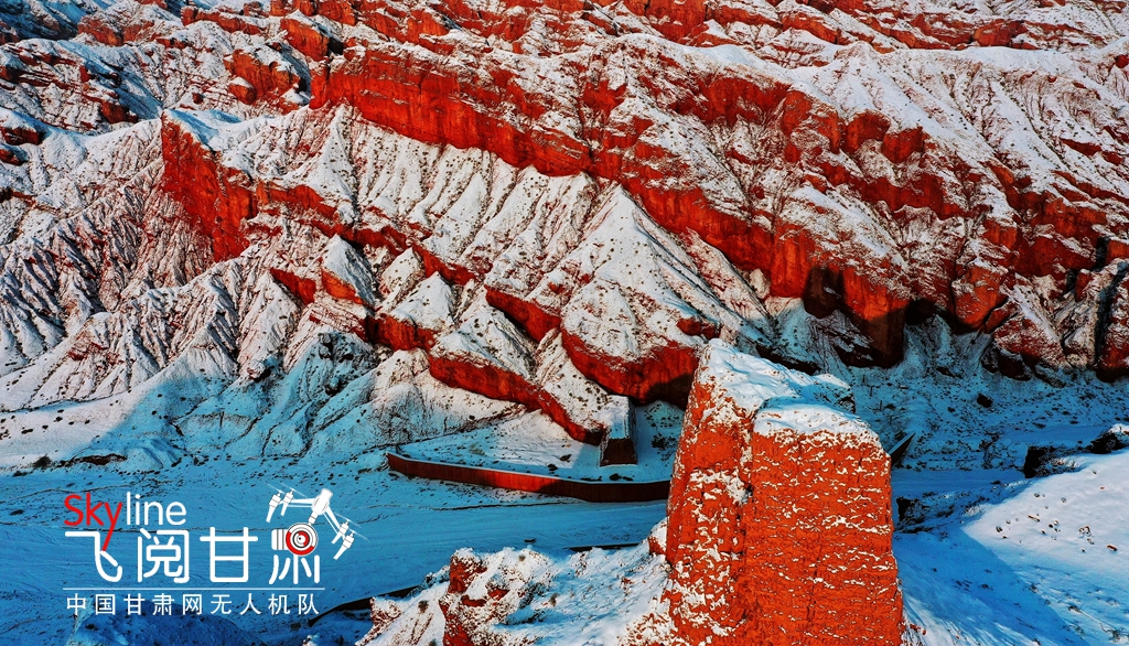12月9日,甘肅省張掖市臨澤縣板橋鎮(zhèn)紅溝丹霞景區(qū),雪后初晴,丹霞披紗,更顯赤艷,成為冬日的一道靚麗風(fēng)景。