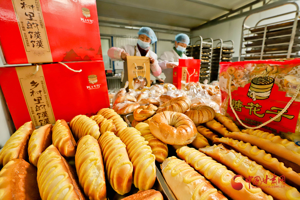 1月6日,甘肅民樂縣隴上鄉(xiāng)村農(nóng)業(yè)科技公司鄉(xiāng)村饃饃加工車間里員工正在精心包裝“花饃饃”。
