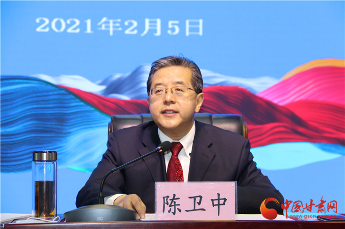 中國甘肅網(wǎng)2月5日訊 (本網(wǎng)記者 張?zhí)m琴 文/圖)2月5日上午,2021年全省文化和旅游局長視頻會議在省會蘭州召開。與往年不同的是,這次會議貫徹落實(shí)省委、省政府的要求,蘭州以外的13個(gè)市州以視頻會議形式參會。整個(gè)會議簡潔、務(wù)實(shí)、高效,旨在學(xué)習(xí)貫徹全國宣傳部長會議、全國文化和旅游廳局長會議、省委十三屆十三次全會暨省委經(jīng)濟(jì)工作會議、省“兩會”和全省宣傳部長會議精神,總結(jié)2020年主要工作,安排2021年重點(diǎn)任務(wù)。甘肅省委宣傳部副部長,省文旅廳黨組書記、廳長陳衛(wèi)中在會上講話,向全省“文旅鐵軍”發(fā)起號召,“干字當(dāng)頭”的決心引發(fā)全場熱烈反響。