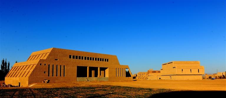 走在磨盤大道上,逐一參訪已經(jīng)建成的敦煌國(guó)際美術(shù)館、古化石館、佛教藝術(shù)館、中華根藝館、古錢幣館、絲綢之路館、彩陶館、玉文化館、栗亭硯館、青銅器館、隕石館、非遺館12個(gè)單體博物館、胡楊山以及正在建設(shè)中的沙漠寶藏館。