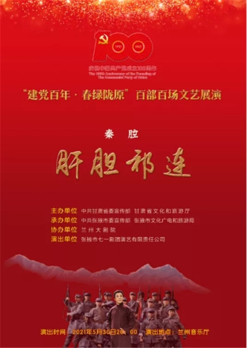 中國甘肅網(wǎng)5月28日訊(本網(wǎng)記者 宋芳科)5月30日晚,剛剛斬獲第六屆甘肅戲劇紅梅獎大賽“紅梅劇目獎”第一名的好成績的秦腔戲《肝膽祁連》,將在蘭州音樂廳精彩上演。《肝膽祁連》以真實的歷史故事改編,講述了民主人士高金城營救紅西路軍戰(zhàn)士的感人故事。屆時,中國甘肅網(wǎng)將現(xiàn)場直播,歡迎廣大網(wǎng)友點擊進(jìn)入直播間,重溫一段波瀾壯闊而又感人至深的歷史,一起向祁連英魂高金城致敬。