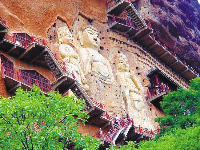 麥積山石窟與敦煌莫高窟同為四大石窟??胺Q5-18 世紀(jì)世界泥塑藝術(shù)史上的瑰寶,素有“東方雕塑陳列館”之稱。2014年作為中哈吉三國(guó)聯(lián)合申遺的“絲綢之路:長(zhǎng)安-天山廊道的路網(wǎng)”中的一處遺址點(diǎn)成功列入《世界遺產(chǎn)名錄》。