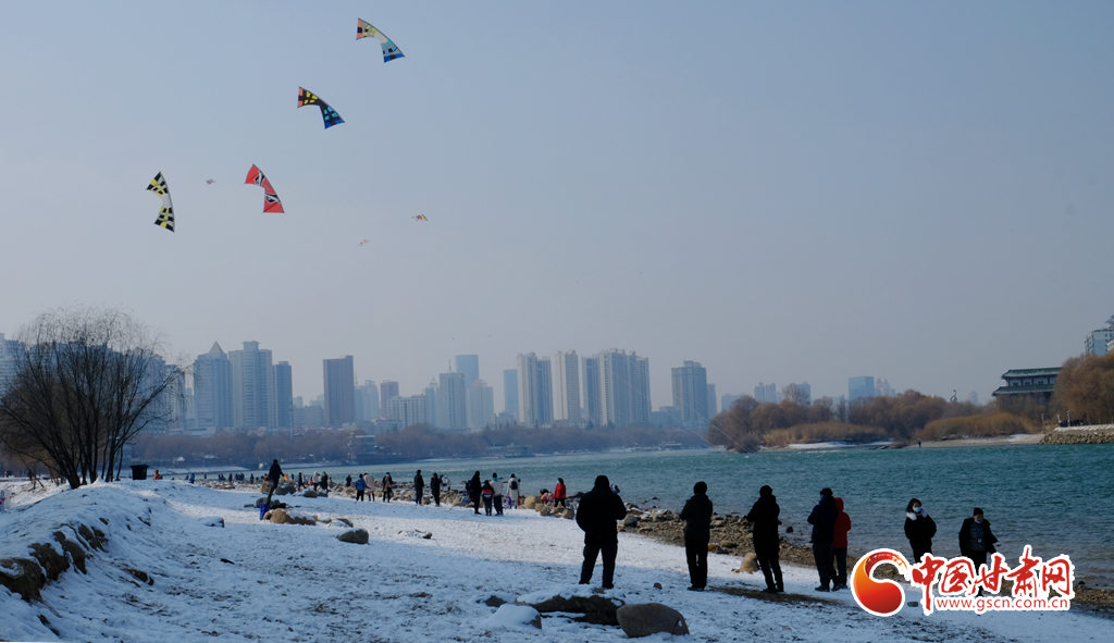 新春佳節(jié),早春時光,2月7日,雪后天晴,市民走出家門來到黃河之濱放風箏。