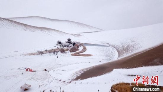 2月17日,甘肅敦煌迎來(lái)降雪天氣,大漠山川被皚皚白雪覆蓋,像一幅幅清秀淡雅的水墨山水畫。敦煌著名風(fēng)景區(qū)——鳴沙山月牙泉景區(qū)吸引游客前來(lái)觀賞難得一見的大漠雪景。這次降雪的特點(diǎn)是降雪量大,但氣溫并不是很低,游人盡情體驗(yàn)“沙雪交融”的絲路盛景。(王斌銀 張曉亮)