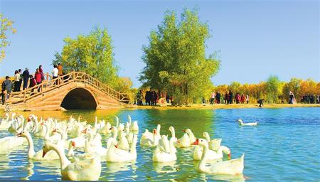 金塔胡楊林金波湖。崔買牛