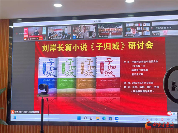 中國甘肅網(wǎng)6月12日訊 (本網(wǎng)記者 張?zhí)m琴)作為敦煌文藝出版社目前出版的“重量級”圖書,劉岸長篇小說《子歸城》受到國內(nèi)各領(lǐng)域關(guān)注和好評。6月11上午,劉岸長篇小說《子歸城》研討會(huì)在北京、福州、蘭州、廈門四地,以線上線下聯(lián)動(dòng)的方式舉行。