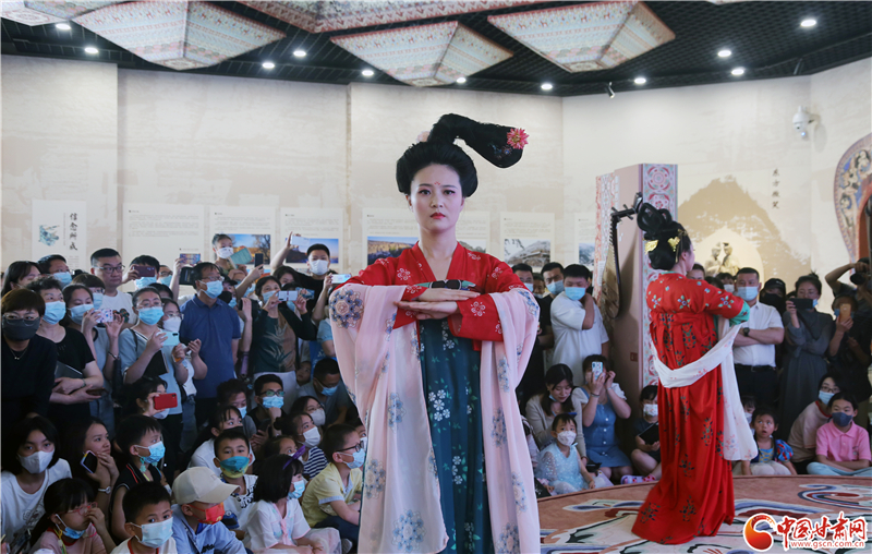 中國甘肅網6月11日訊(本網記者 程健 宋芳科)6月11日上午,值文化和自然遺產日到來之際,敦煌文化研究院在蘭州分院敦煌藝術館舉辦了“時代共進、人民共享”主題展,通過虛實融合敦煌石窟體驗、敦煌服飾展演、文創(chuàng)產品展示等,向廣大市民群眾全方位呈現(xiàn)了深厚的敦煌文化與莫高窟文化遺產。當天的活動,中國甘肅網全程進行了網絡直播。