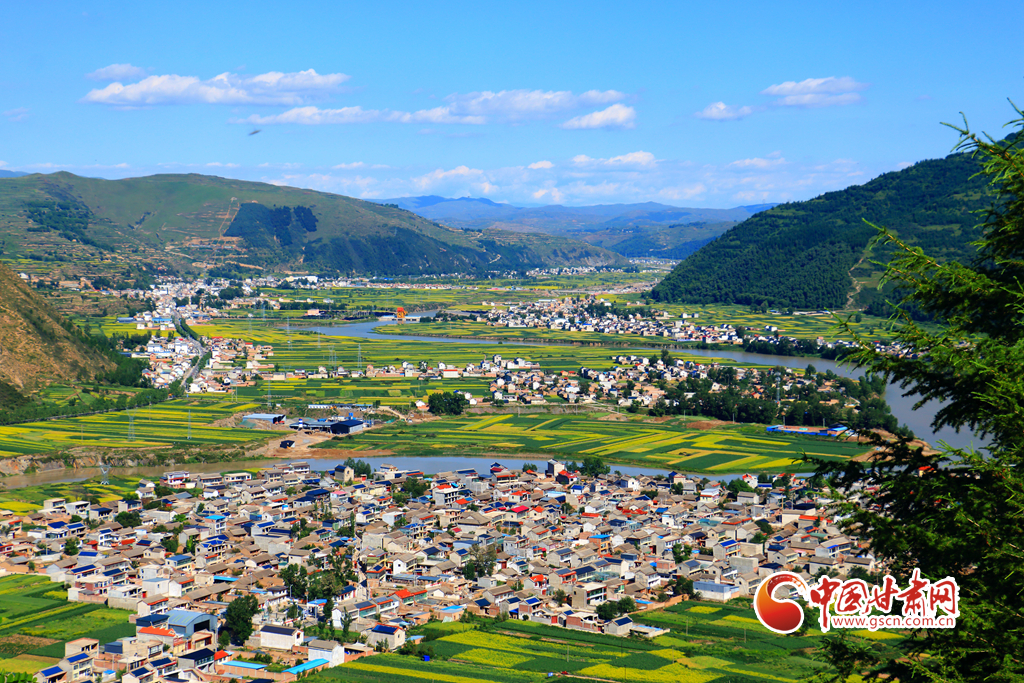 盛夏時(shí)節(jié),岷縣十里鎮(zhèn)洮河兩岸的油菜花競(jìng)相綻放,與民居、山川、林地、豐收在望的各類中藥材相映,構(gòu)成了一幅生態(tài)宜居的田園畫卷,美不勝收。