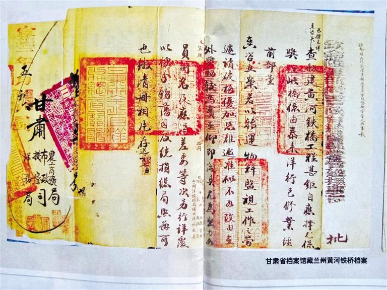在古金城蘭州架設橫跨于黃河南北兩岸的鐵橋,曾是左宗棠的夢想,只因當時洋商索價過高而作罷。30年后,正值清末實行新政,黃河鐵橋在陜甘總督升允和彭英甲的任上創(chuàng)修成功。建橋過程慘淡經(jīng)營,艱苦備至,已人所共知。好在建設黃河鐵橋形成的檔案,歸檔于甘肅農(nóng)工商礦總局,沒有存于當時的布政使司,幸運地躲過了民國二年那一劫。甘肅農(nóng)工商礦總局后更名為甘肅省署實業(yè)廳,民國十六年(1927年)甘肅省政府改實業(yè)廳為建設廳,這些檔案存于建設廳。1949年7月,國民黨甘肅省政府逃離前發(fā)出緊急命令:“轉(zhuǎn)移前將政府檔案做緊急處理”,重要檔案進行“焚毀、埋藏、轉(zhuǎn)移”,次要檔案“從速列冊銷毀”。只因倉皇逃離,未來得及銷毀。人民解放軍從解放蘭州的戰(zhàn)火中把包括鐵橋檔案在內(nèi)的許多檔案搶救出來,由蘭州軍管會接管。2002年,《蘭州黃河鐵橋檔案》入選首批《中國檔案文獻遺產(chǎn)名錄》。