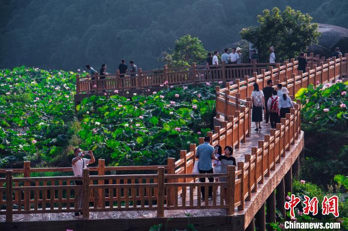 原標(biāo)題:福建建寧荷花怒放 吸引游客“為荷而來(lái)”