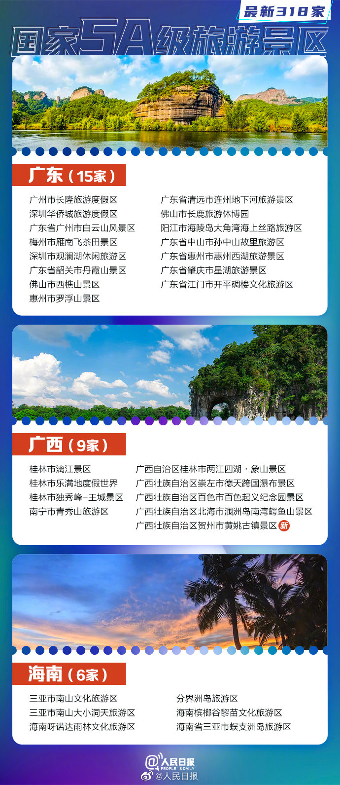 文旅部7月15日正式確定12家景區(qū)為國家5A級旅游景區(qū)。截至目前,全國共有318家5A景區(qū)。收好這份最新5A景區(qū)全名單↓↓