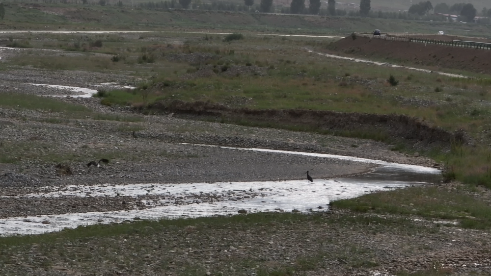 近年來,黑鸛在祁連山北麓的活動明顯增多。蘭州大學生態(tài)學院教授級高級工程師張立勛說,從拍攝到的視頻和照片判斷,這三只黑鸛是亞成體。