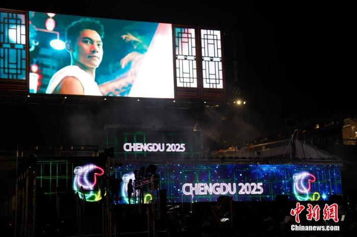 圖為閉幕式現(xiàn)場(chǎng)進(jìn)入“成都時(shí)間”。中新社發(fā) 程軒 供圖