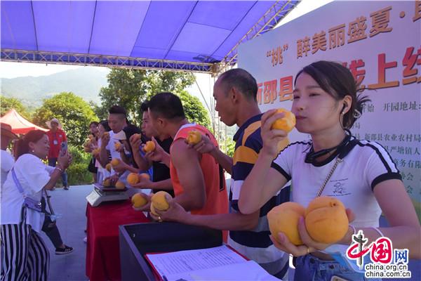 活動中,還開展了 “最大桃王”“最甜桃后”評比和吃黃桃比賽,將現(xiàn)場氣氛推向了高潮?;顒幼詈?,還開啟了2022年新邵縣“新邵資味”農(nóng)特產(chǎn)品短視頻暨直播大賽。