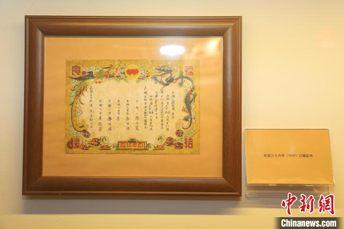 圖為博物館展出的民國(guó)時(shí)期的訂婚證書(shū)。 劉力鑫 攝