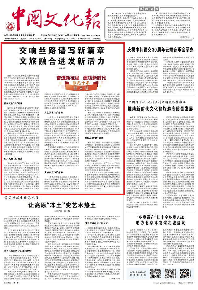 甘肅省文化和旅游廳相關(guān)負(fù)責(zé)人表示,要繼續(xù)牢記使命、砥礪前行,統(tǒng)籌推動(dòng)文化和旅游業(yè)融合發(fā)展、高質(zhì)量發(fā)展,把發(fā)展成果更好地惠及民眾,不斷增強(qiáng)廣大人民群眾的文化獲得感和旅游幸福感,繼續(xù)為開創(chuàng)富民興隴新局面、建設(shè)幸福美好新甘肅的宏偉藍(lán)圖貢獻(xiàn)新時(shí)代文旅力量,以實(shí)際行動(dòng)迎接黨的二十大勝利召開。(文/肖含亮)