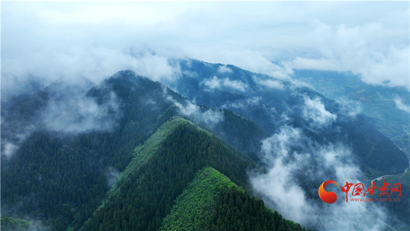 連續(xù)兩日秋雨綿綿,位于榆中縣的興隆山間云霧繚繞蔓延,隨著云霧不斷流動(dòng)、飄浮,群峰也隨之千變?nèi)f化,宛如仙境。