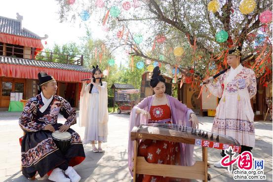 活動(dòng)期間舉行的歌舞演藝也延續(xù)了民俗活動(dòng)的精彩,由藝術(shù)評(píng)書(shū)和敦煌鼓舞共同呈現(xiàn)的“嫦娥奔月”表演、傳統(tǒng)樂(lè)器搭配的中秋古曲會(huì)等一個(gè)個(gè)精彩節(jié)目,將傳統(tǒng)文化與歌舞相融合,通過(guò)一種全新的面貌和形式將深厚的文化底蘊(yùn)呈現(xiàn)在群眾面前。