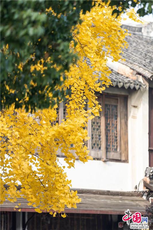 迷失在銀杏葉的金黃色夢里,人與秋俱醉。去博物館吧,門前的銀杏快黃了。目光落在樹梢,大片大片的金燦籠絡(luò)著秋味,層層疊疊,如軟緞般沁潤著游者的心緒。旋舞縹緲的落葉婀娜著腰姿,在空中打著圈兒,透著光亮,醞釀著驚喜。有人說,這是周莊最受歡迎的大樹(不接受反駁),豐盛的樹葉開出一朵碩大的樹蔭,更是出片的最佳“伴侶”。就這樣簡單地坐在樹下,什么也不做,捧一杯暖手的奶茶放空自己,閑看游人往來,任飛鳥羨慕。