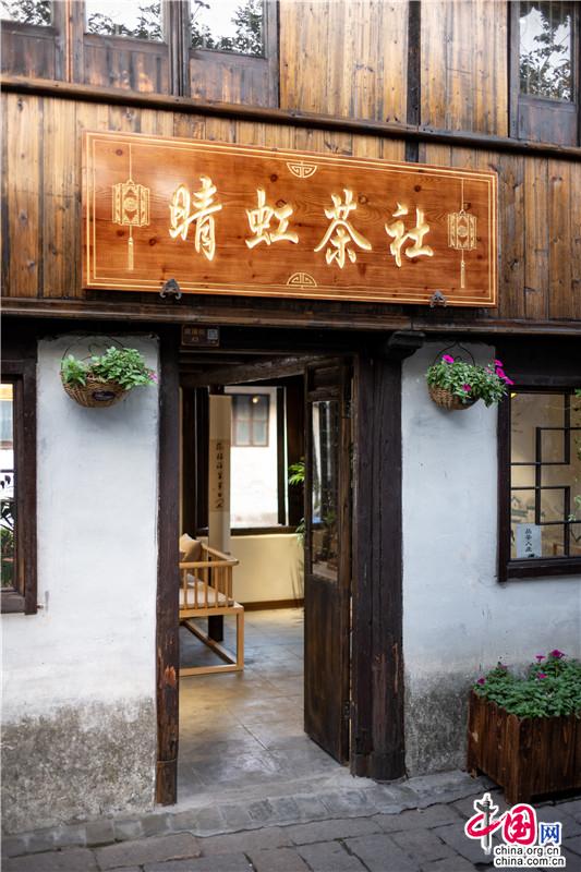 一杯清茶慰秋涼。一半清香,一半醉。湖光軟漾,目光游弋,步子跟著流水緩了下來,斜身隱入街角的茶樓,點(diǎn)上一杯“阿婆茶”,這是周莊入秋的儀式。古樸氣韻、木香纏繞,聲色之間,抿一口茶香,身與心皆泡在這杯江南意境里。正如館名“晴虹茶社”,一杯茶歇,如晴日彩虹,拂開心中塵霧,只見晴天與好事。聚賓樓里阿婆茶香就著聲聲悠揚(yáng),時(shí)間氤氳成過眼云煙。