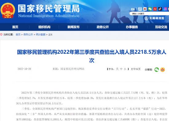 移民管理局:三季度簽發(fā)護(hù)照量環(huán)比增49.5%