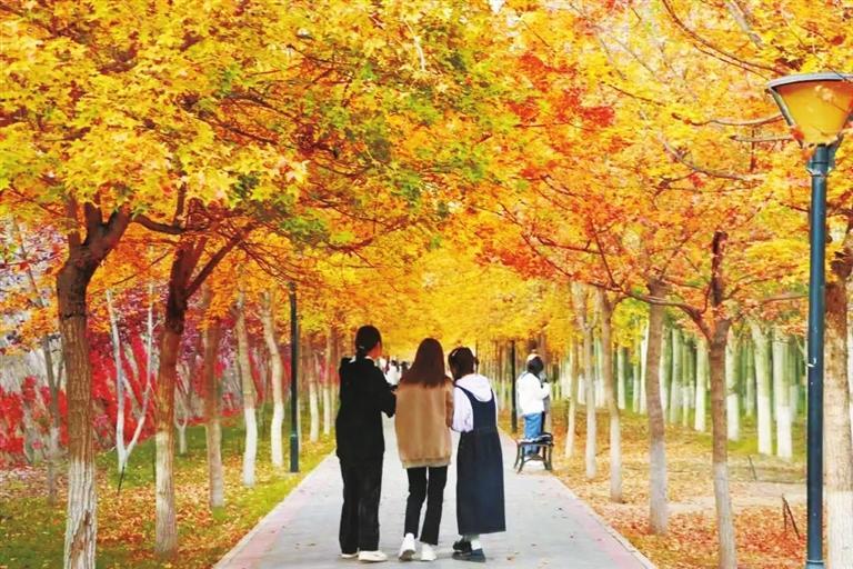 雖已深秋,北方勝景依然寧靜美麗。這個季節(jié)的蘭州高校校園,也染上了一層濃濃秋意,明朗火紅,澄澈暖黃,肆意熱烈,芬芳醉人!