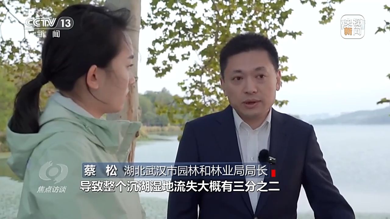 湖北武漢市園林和林業(yè)局局長 蔡松:圍湖造田、養(yǎng)魚,導(dǎo)致整個沉湖濕地流失大概有三分之二,比較嚴(yán)重。從2013年開始,武漢市加大對沉湖濕地的整治力度,通過生態(tài)補償?shù)姆绞剑麄€退漁還濕達到了7.8萬畝。