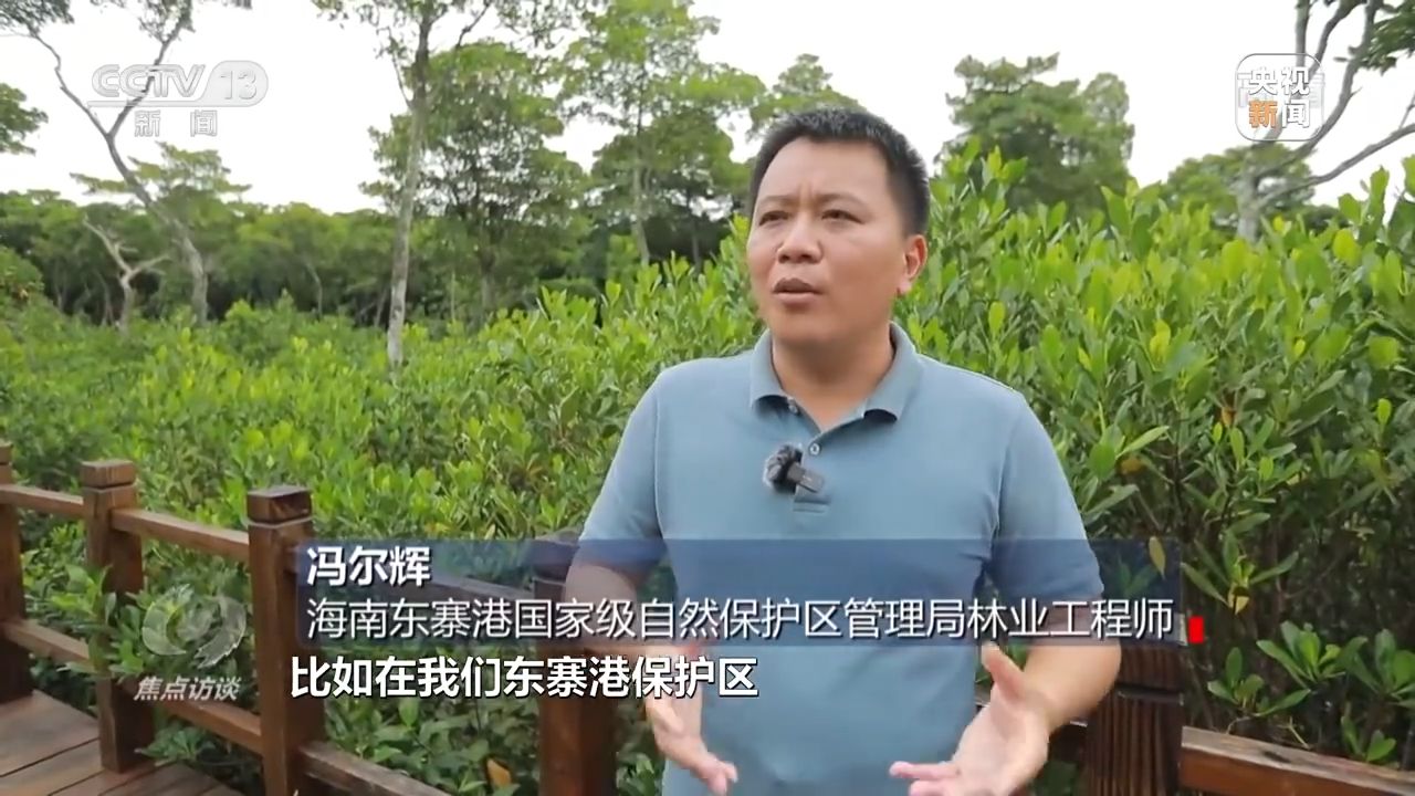 海南??谑辛謽I(yè)局局長、林業(yè)高級工程師 錢軍:在東寨港區(qū)域,我們修復(fù)了4783畝的紅樹林。通過對一系列生態(tài)修復(fù),保護好紅樹林,也讓子孫后代享受保護紅樹林帶來的紅利。