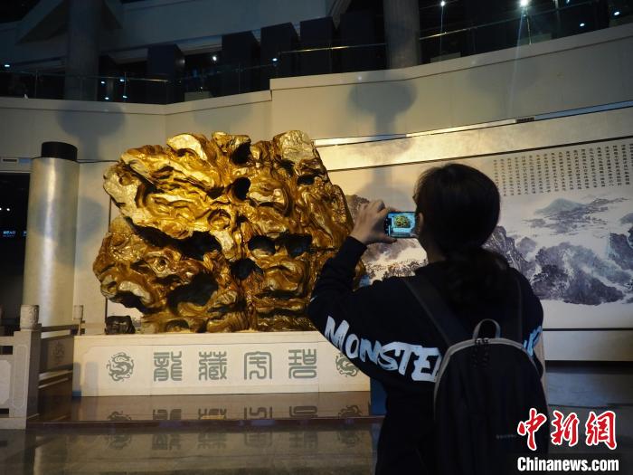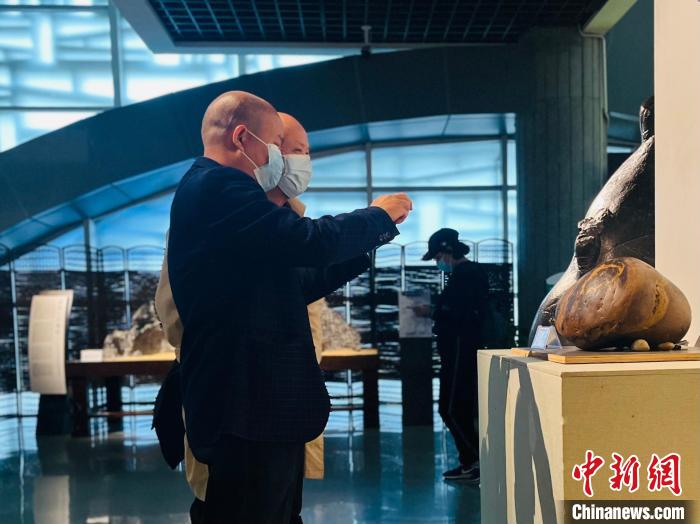圖為一位參觀(guān)者用手機(jī)拍攝奇石。李嬌陽(yáng) 攝