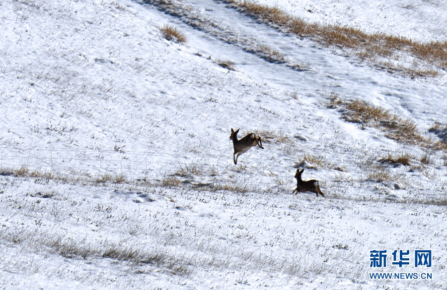 狍鹿“跨欄”。新華網(wǎng)發(fā) (王曉涇 攝)