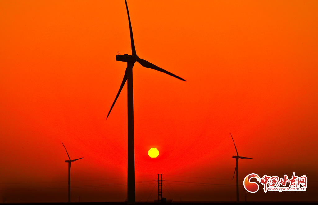 11月17日,甘肅省張掖市甘州區(qū)平山湖蒙古族鄉(xiāng)的草原上,龍?jiān)措娏Ω拭C平山湖風(fēng)電場66臺風(fēng)電機(jī)組高高聳立,碩大的風(fēng)輪迎風(fēng)不息,與晚霞相映成景。
