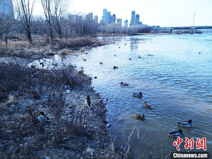 11月22日,小雪時(shí)節(jié)。在吉林市長(zhǎng)白島沿岸,千余只南遷候鳥在此筑巢安家。長(zhǎng)年不凍的松花江流經(jīng)吉林市,位于城區(qū)的長(zhǎng)白島每逢冬季都會(huì)迎來(lái)綠頭鴨、赤麻鴨、秋沙鴨等南遷水鳥,它們?cè)趰u上悠然自得、嬉鬧過(guò)冬。