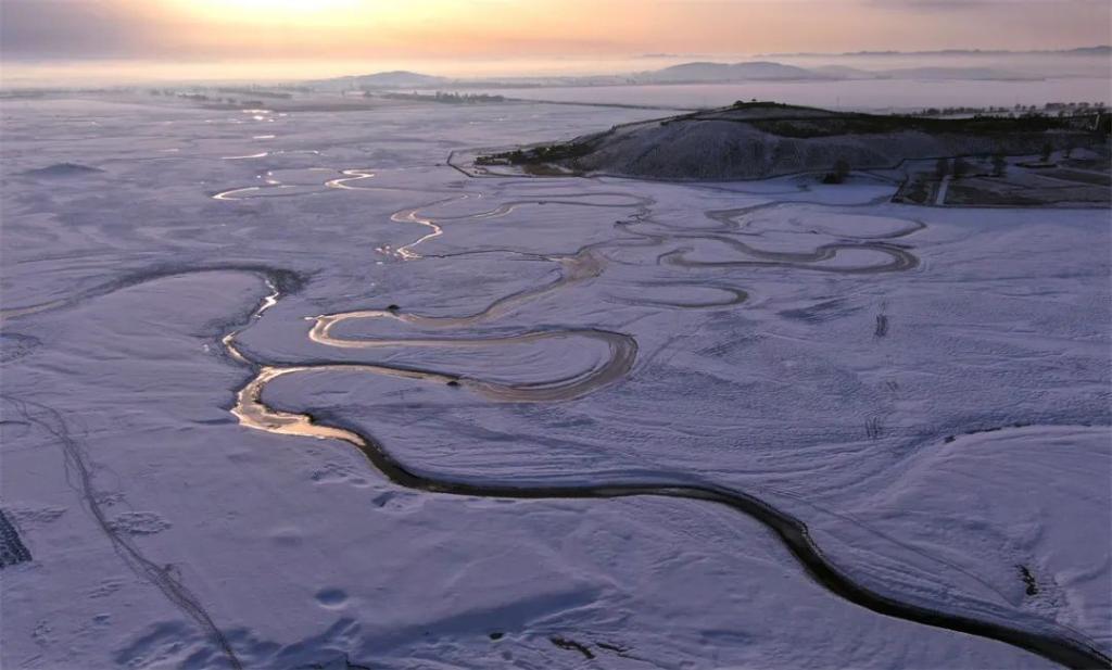 這是位于張家口市沽源縣的冬季閃電河濕地冰雪風(fēng)光(2021年3月13日攝,無人機照片)。新華社發(fā)