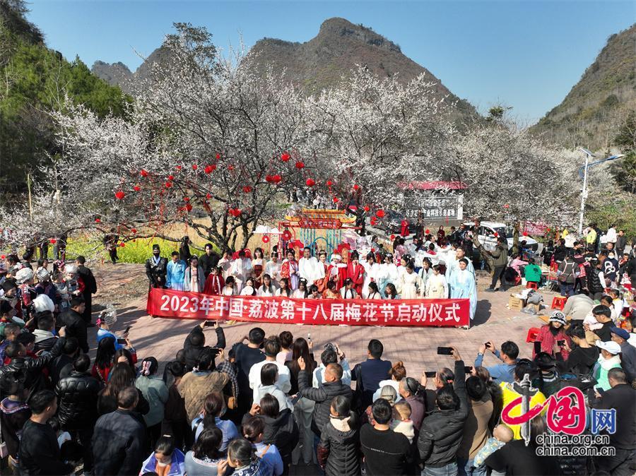 眼下,荔波縣萬畝梅原景區(qū)已經進入最佳觀賞期。1月30日,2023年中國·荔波第十八屆梅花節(jié)開幕,八方游客齊聚荔波縣黎明關水族鄉(xiāng)萬畝梅原景區(qū),聽曲、賞梅、品茗、觀演出,共賞梅原盛景。
