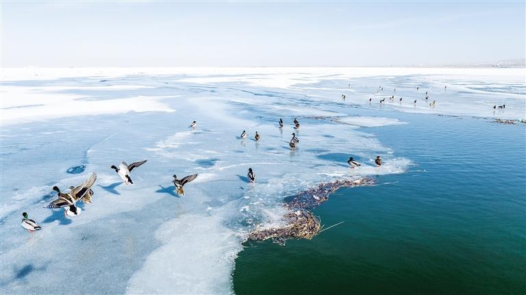 中國(guó)甘肅網(wǎng)2月3日訊 據(jù)蘭州晚報(bào)報(bào)道(通訊員 李永華 魏生明 記者 高慧霞 攝)2月2日,位于金塔縣的解放村水庫,越冬候鳥綠頭鴨、赤麻鴨成群結(jié)隊(duì)。隨著金塔縣生態(tài)環(huán)境的持續(xù)改善和好轉(zhuǎn),近幾年過境候鳥數(shù)量持續(xù)升高,每年冬天都有綠頭鴨、赤麻鴨等鳥類遷徙到解放村水庫等濕地越冬。