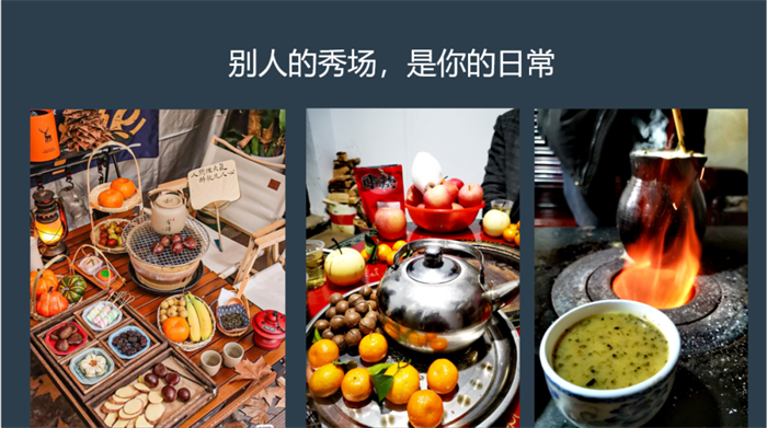 文旅產(chǎn)品的創(chuàng)新,很重要的一點(diǎn),就是“本土化文化,文化本土化”。比如,去年下半年的時(shí)候,“圍爐煮茶”突然在都市年輕消費(fèi)群體中火了,先是出現(xiàn)在露營地,三五成群的年輕人圍著炭燒爐,煮茶、烤紅薯、烤水果、聊天,人均花費(fèi)數(shù)百元不等。后來逐漸衍生到民宿、酒店,春節(jié)期間,家庭中的“圍爐煮茶”也興起,這似乎又是一項(xiàng)傳統(tǒng)的回歸。