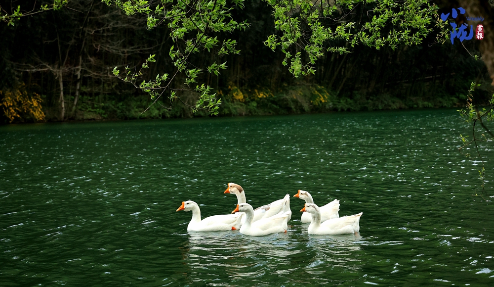 一群群鴨子在清澈的溪水中嬉戲,絡(luò)繹不絕的游人無(wú)不沉醉在山水之中。