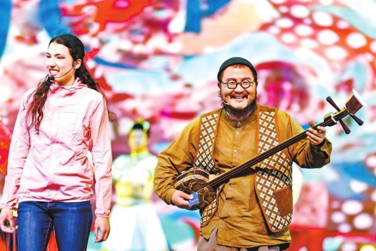 音樂響起,舞蹈《絲路之光》以漢唐雄風(fēng)暢迎四海賓朋,鏗鏘有力的武術(shù)表演《問道崆峒》引發(fā)陣陣掌聲、雜技《生命禮贊》讓觀眾的心懸在了半空中又落下、敦煌復(fù)原服飾秀《絕色敦煌》讓觀眾“沉浸式”感受黃河文化、長城文化、絲路文化的交融與碰撞。演員們身著民族服飾載歌載舞集中展示甘肅省少數(shù)民族的獨特人文風(fēng)情和各族人民對美好生活的禮贊。除此之外,甘肅本土民謠音樂人張尕慫和英國音樂人肖恩聯(lián)合創(chuàng)作的《我畫個甘肅給你看》,通過音樂舞蹈向海內(nèi)外游客發(fā)出暢游如意甘肅的誠摯邀請。