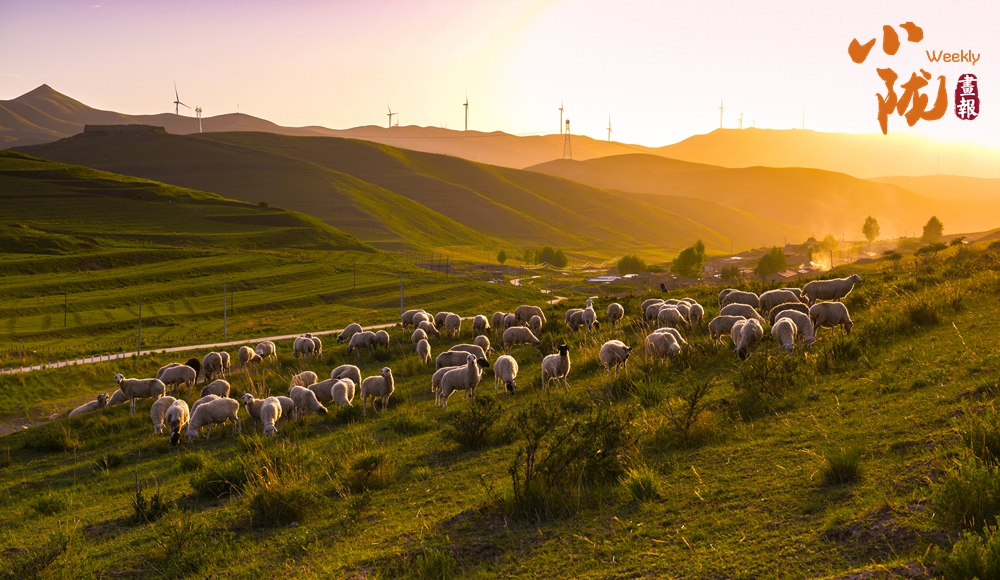 夕陽(yáng)西下,草原,房屋,羊群,山脈……融為一體,猶如一幅淡墨山水畫(huà)躍然紙上,熠熠生輝。