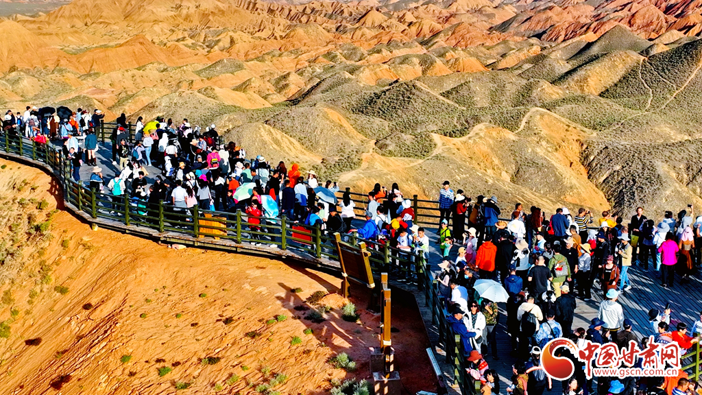 張掖七彩丹霞地貌群以其層理交錯(cuò)、巖壁陡峭、氣勢磅礴、造型奇特、色彩斑斕而稱奇。2020年,國家文化和旅游部確定張掖七彩丹霞景區(qū)為國家5A級(jí)旅游景區(qū);同年,張掖地質(zhì)公園獲批“聯(lián)合國教科文組織世界地質(zhì)公園”。據(jù)七彩丹霞景區(qū)管委會(huì)統(tǒng)計(jì),當(dāng)日是中秋國慶假期第二天,該景區(qū)游客量達(dá)29000多人?!?/p>