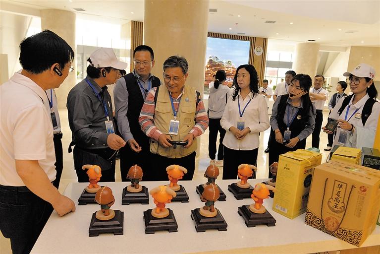 聯(lián)合國(guó)教科文組織專家在臨夏地質(zhì)公園博物館觀看文創(chuàng)產(chǎn)品。