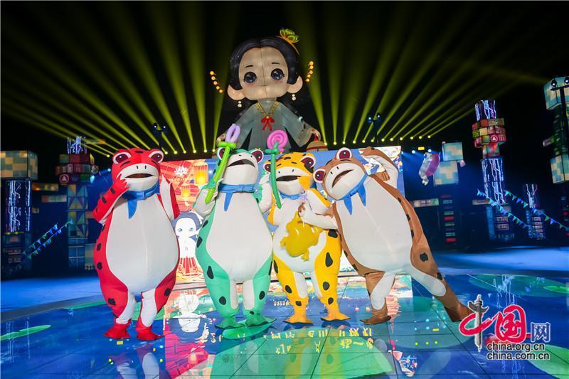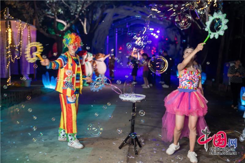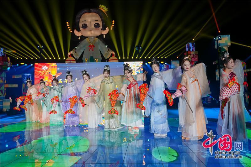 水鄉(xiāng)錦鯉,有福有喜,錦鯉飛魚秀徜徉在舞臺(tái)與燈組之間。