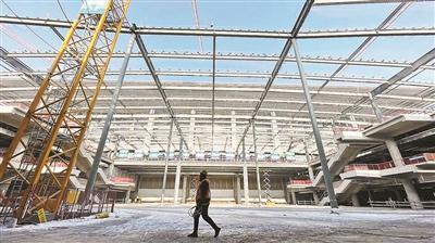 在豐臺(tái)火車站南側(cè),數(shù)百名工人正在火熱施工中,豐臺(tái)火車站交通樞紐的鋼結(jié)構(gòu)骨架已經(jīng)“沖出”地面。昨天,據(jù)首發(fā)集團(tuán)公聯(lián)公司消息,去年年底,豐臺(tái)火車站交通樞紐的南樞紐和北樞紐均已完成主體結(jié)構(gòu)施工。目前,正在進(jìn)行辦公樓外立面幕墻及室內(nèi)裝修施工。力爭(zhēng)今年年底實(shí)現(xiàn)全面完工。