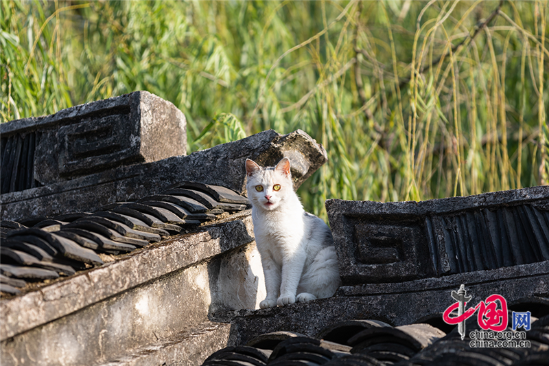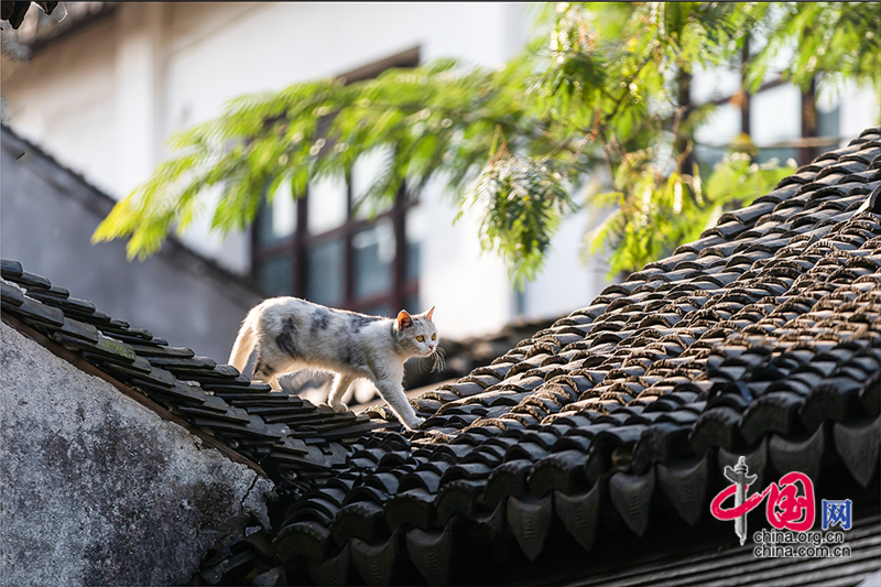 在毛孩子眼里,這就是包容一切活動的「游樂場」,片片青瓦上留下梅花印?;蛟S你也該往古鎮(zhèn)的屋頂上瞧,檐角翹伸、清風古韻,讓人心曠神迷?;蛲侵回堃粯优噬细咛?,推窗看那水那橋,那木門青瓦,就是江南水鄉(xiāng)的具象。