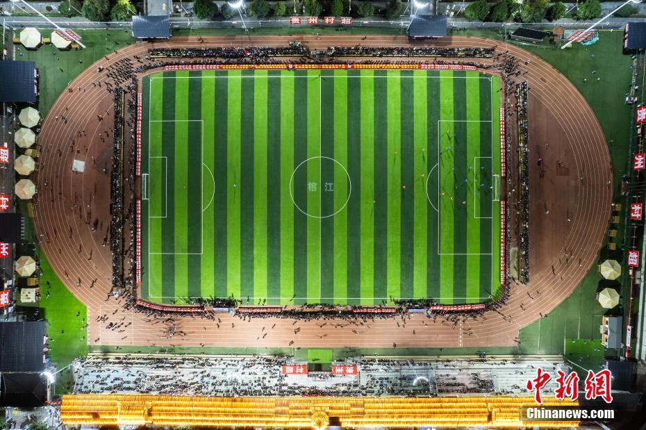 圖為1月18日晚,航拍2024年貴州“村超”預(yù)選賽現(xiàn)場(chǎng)。(資料圖)唐哲 攝