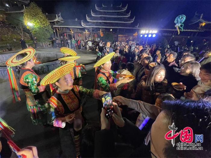 好在天氣給臉,年三十到正月初五,天天陽光明媚,溫暖熙熙,給演唱會的人氣奠定了很好的基礎。你瞧,穿巖山景區(qū)楓香瑤寨、千里古寨、雁棲山莊、蒲安沖民宿、時珍園康養(yǎng)上千個房間都住滿了游客,都連統(tǒng)溪河鎮(zhèn)上的酒店、客棧都是爆棚。從婁底趕來李小苑一家五口和唐詩一家三口,結伴而來,沒有住處,只好到遠離景區(qū)15公里的縣城住下,然后去景區(qū)吃晚飯,晚上觀看演出。唐詩對筆者說,我來過穿巖山,感覺這里的風景好看,工作人員也很客氣,有那么多的住宿點,我就沒有預訂。想不到來了之后,全訂完了。