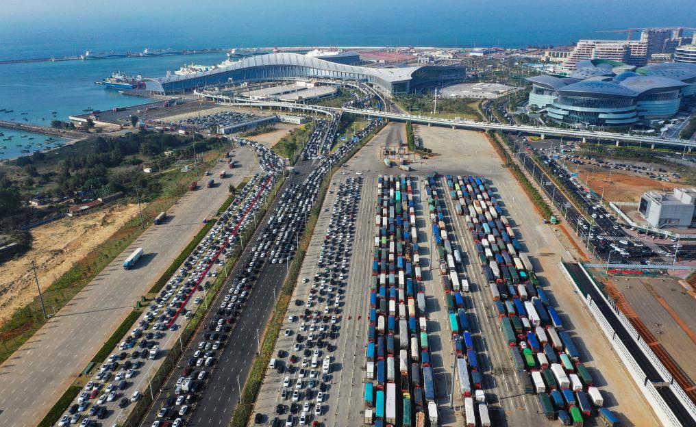 ??谑薪煌ㄟ\(yùn)輸和港航管理局發(fā)布的信息顯示,截至2月19日15時,預(yù)約出島小車總數(shù)約2萬輛,已運(yùn)送出島約1萬輛,全天預(yù)約待出島約1萬輛。新海港港區(qū)和港外待渡車場呈現(xiàn)飽和狀態(tài),疏運(yùn)仍需較長時間。