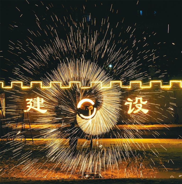 2月21日晚,敦煌市“火樹銀花·瑞龍迎春”打鐵花民俗展演活動在黨河風情線舉行,喜迎元宵佳節(jié)。朵朵鐵花凌空綻放,流光溢彩,吸引了眾多市民游客前來觀賞。 敦煌“打鐵花”歷史久遠,起源于唐宋,后經(jīng)千年演變,成為春節(jié)期間一項富有地方特色的民俗文化活動。