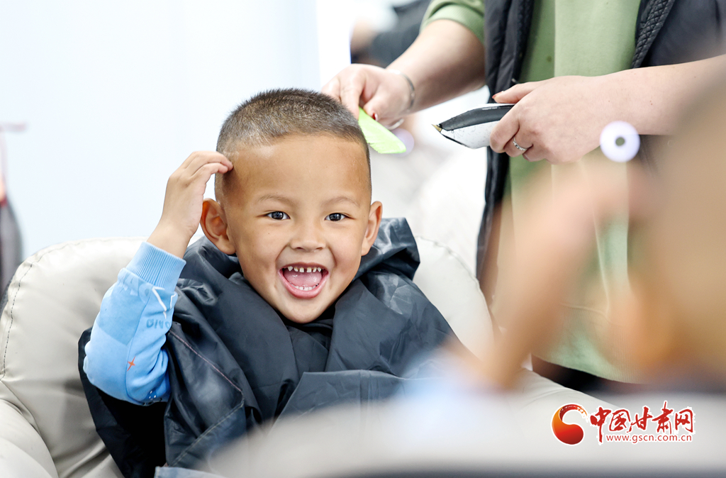 3月11日,在臨夏市一理發(fā)店內,理發(fā)師正在為一名小朋友“剃龍頭”。當日,是農歷二月初二,許多家長帶著孩子到理發(fā)店理發(fā),希望孩子能健康成長,日后出人頭地,為新的一年討個好彩頭。