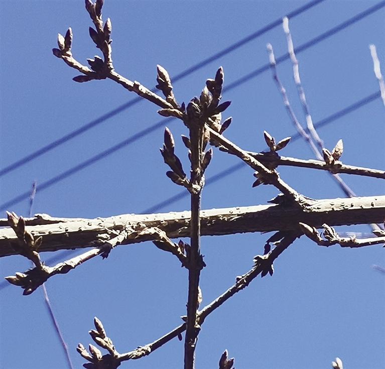 小游園里的連翹已吐蕾